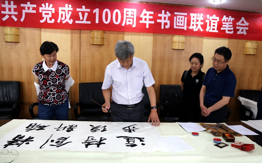 为庆祝中国共产党成立100周年,回顾党的奋斗历程,歌颂美好新时代,助力公司企业文化建设。6月24日,鸿儒科技(广州)有限公司、烟台市老年书画研究会、烟台市老干部志愿者协会共同举办“庆祝中国共产党成立100周年联谊书画笔会”。本次活动共有18位县处级退休老干部书画家参加。